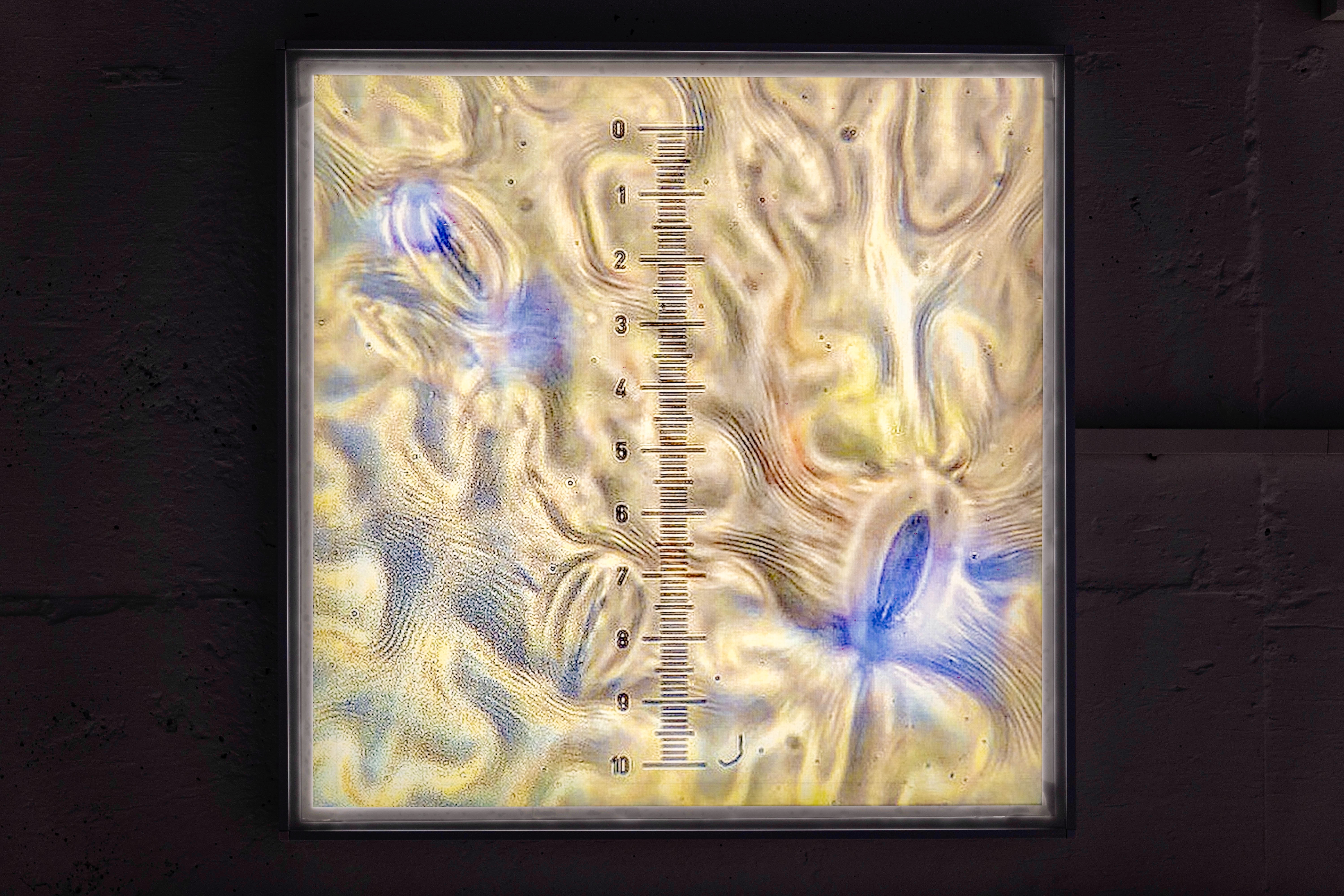 Photograph printed on glossy paper and installed on a ceiling lamp